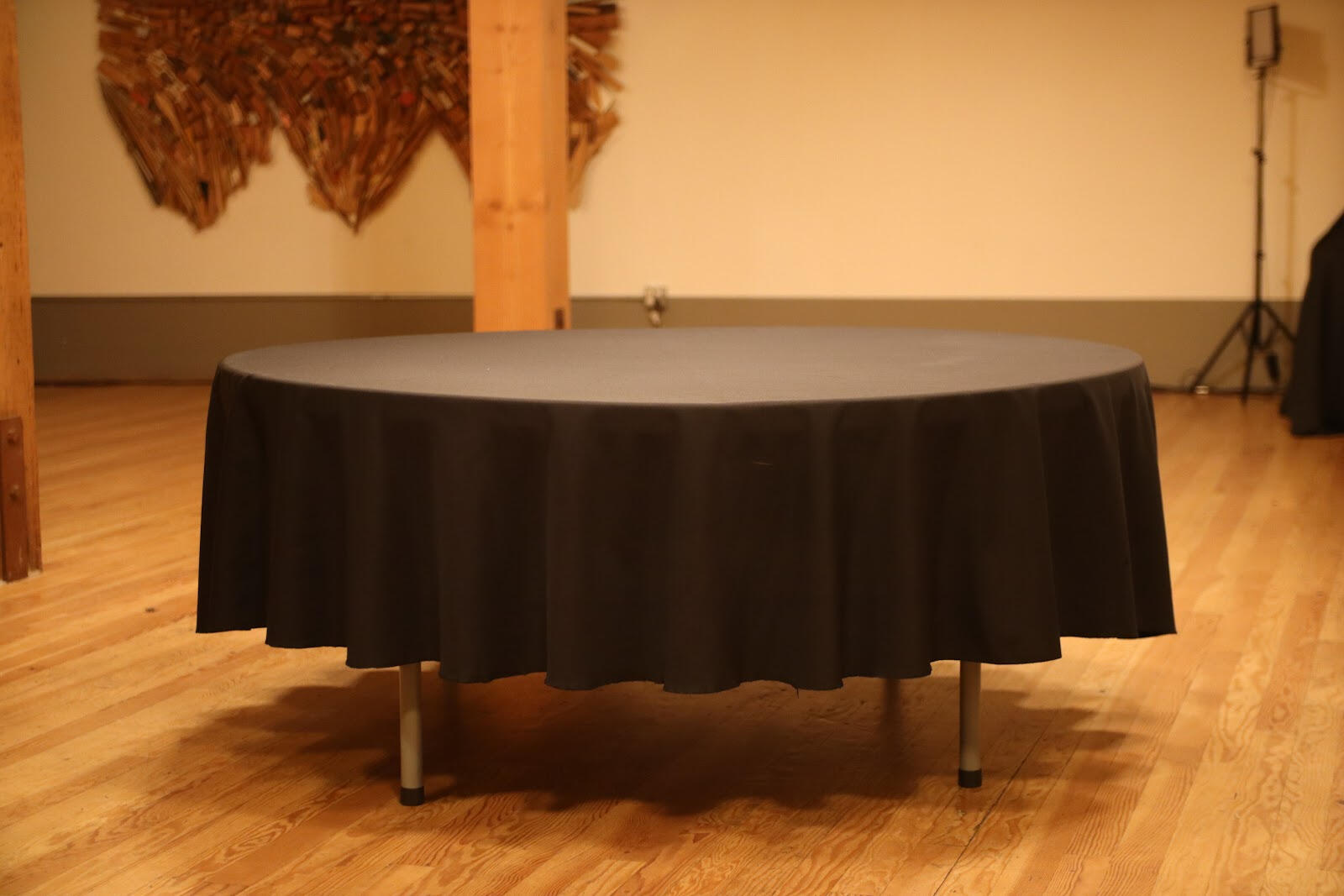 - 4 Round tables w black linens (70" across) (seats 8 each)